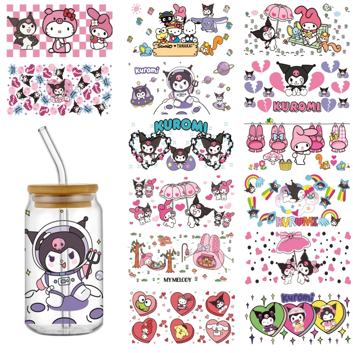 Miniso Cartoon Friend Kuromi and melody Pattern UV DTF Sticker Waterproof Transfers Decals For 16oz Glass Cup Wrap Stickers
