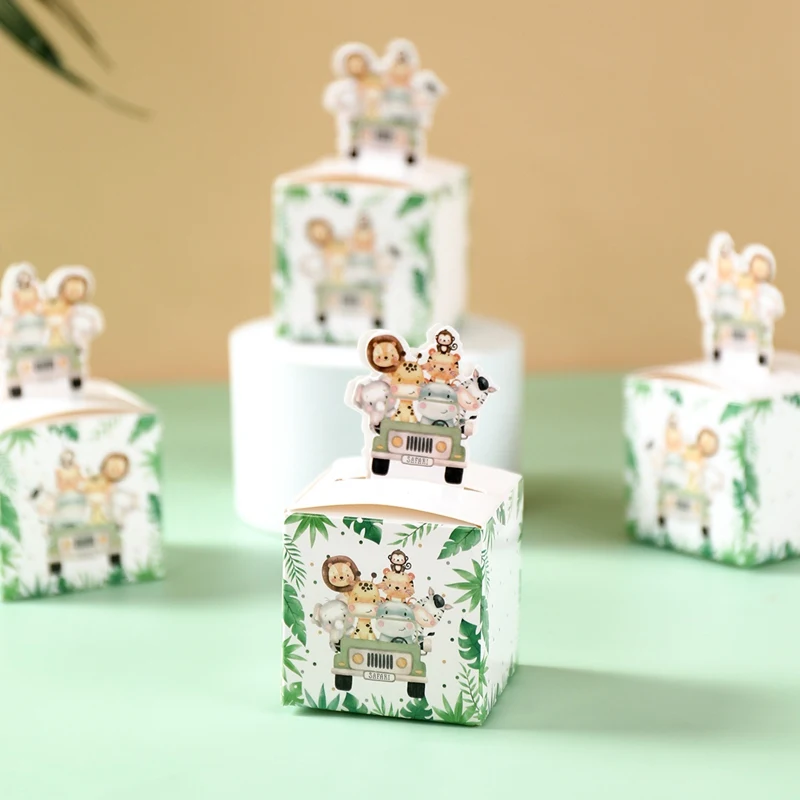 24pcs Jungle Animal Candy Boxes Safari Birthday Party Decoration Kids Gift Packaging Box Wild One Baby Shower Supplies Box Bag
