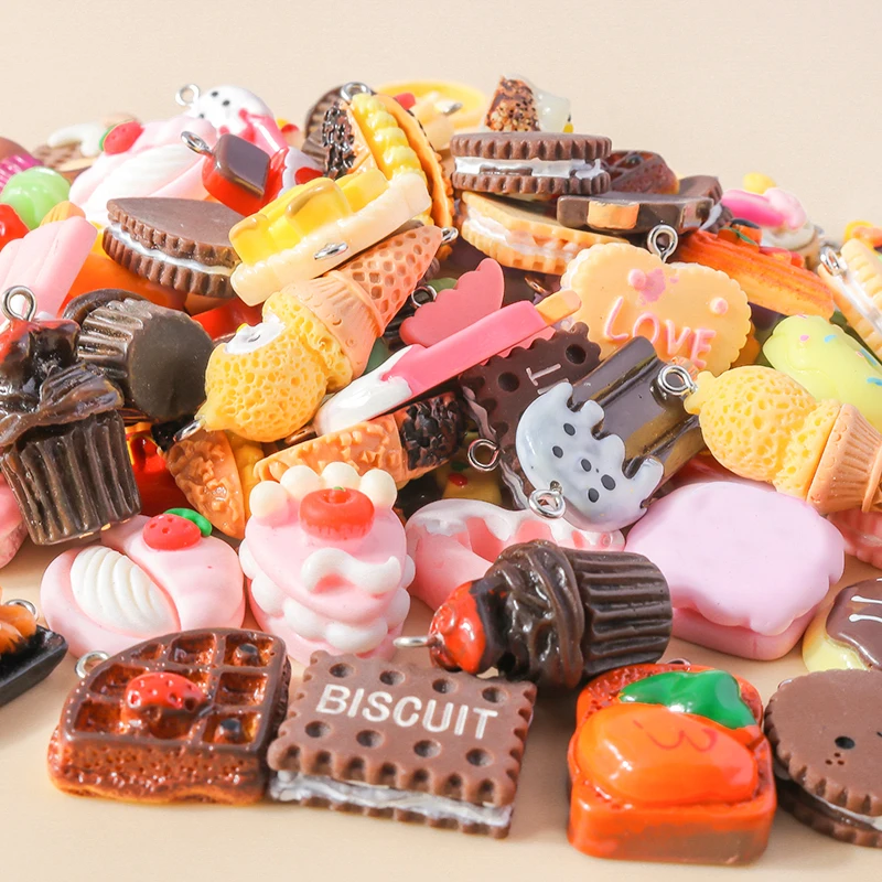 15Pcs Mix Resin Funny Food French Fries Cookies Chocolate Bread Pizza Charms for DIY Earring Keychain Bracelet Jewelry Pendants