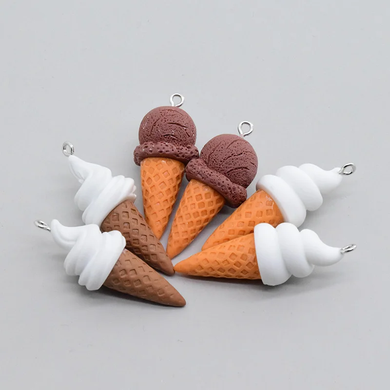 10pcs Mini Ice Cream Cone Resin Earring Charms Cute Food Pendant For Keychain Making Diy Caafts Jewelry Findings