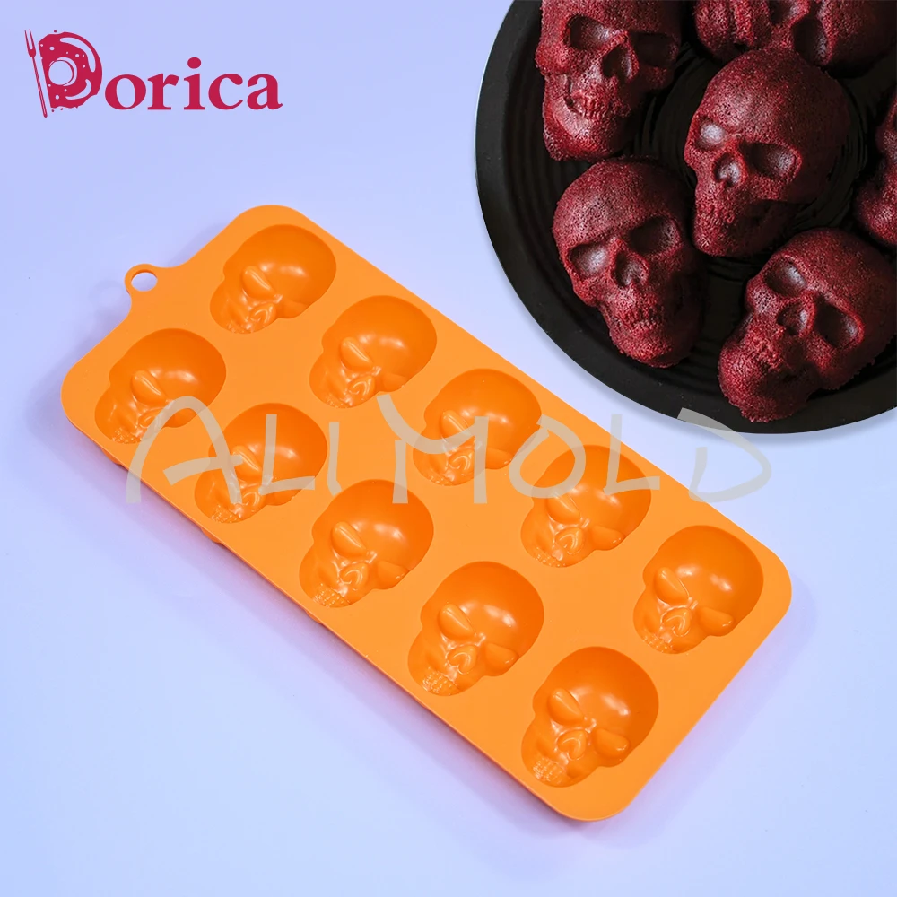 Dorica Skull Silicone Mold DIY Fondant Candy Chocolate Mould Ice Cube Making Model Halloween Cake Decoration Tool Kitchen Baking