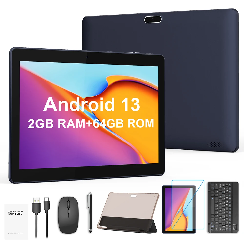 10 inch Android 13 tablet, quad-core processor, 4(2+2) GB RAM, 64GB ROM, 1TB extended memory, 1280 * 800 HD IPS screen, 6000mAh