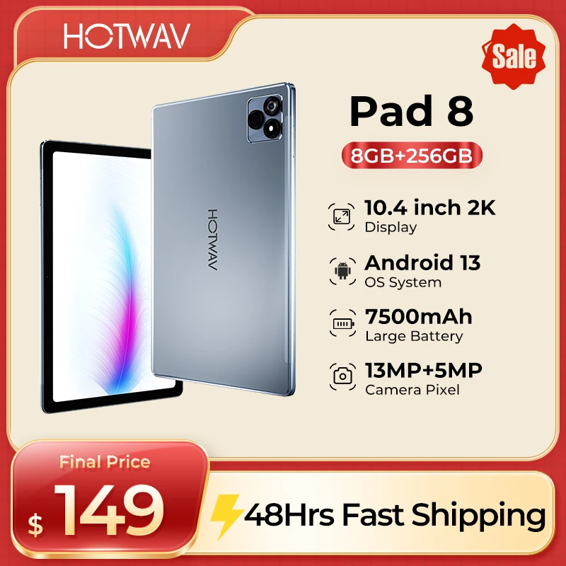 HOTWAV-Pad 8 Tablet PC, Android 13, 10.4 ", FHD + 2K Display, 8GB + 256GB, 13MP Camera, T606 Octa-Core, 7500mAh, 2 in 1, PC, New  Read more