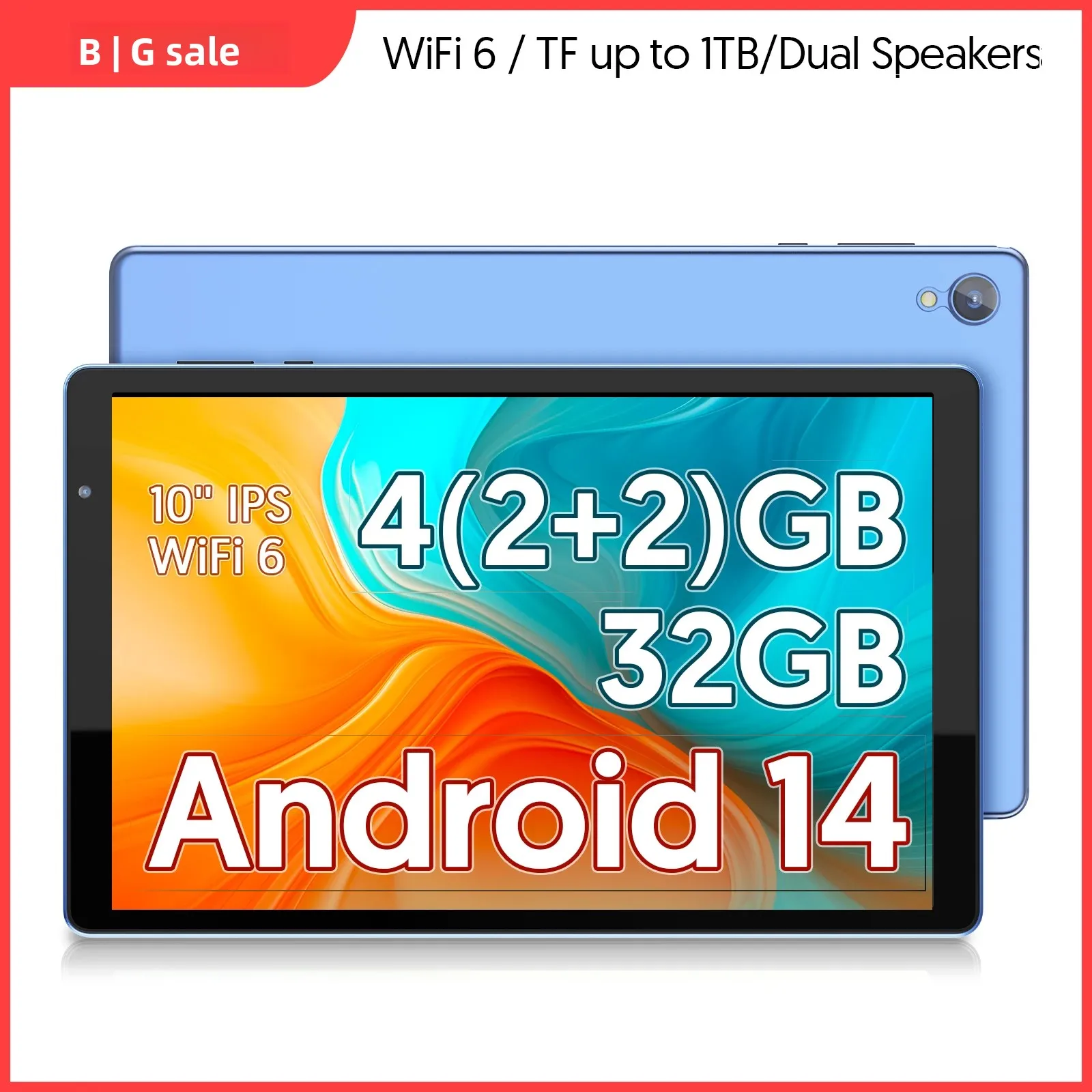 Latest Android 14 Tablet, 10-inch Tablet, Quad-core Processor, 5G WiFi, 4GB ROM + 32GB RAM, 1280*800 Resolution, 6000mAh Battery