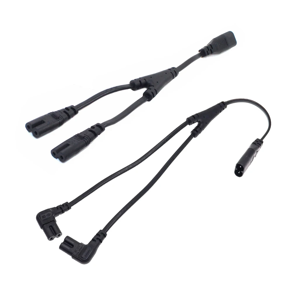 IEC 320 C8 Male to Dual C7 Right Angle Female Y Split Power Cable, IEC 2Pin Figure 8 Male to 2 Female Cord 30CM/45CM Black