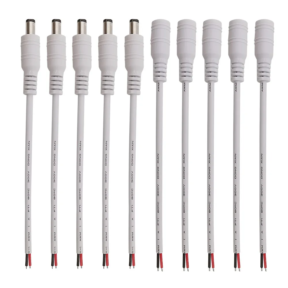 DC 5.5x2.1mm Male & Female Cable White 12V 5.5*2.1mm DC Power Plug Jack Pigtail Cable Wire Connector Adapter for LED Strip Light