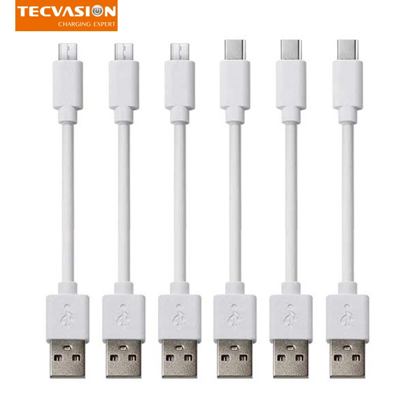 White 6PCS Short Cable 25CM Micro USB Type C Wire Charging Cord 2A For Huawei Android Mobile Phone Power Bank Charger Station