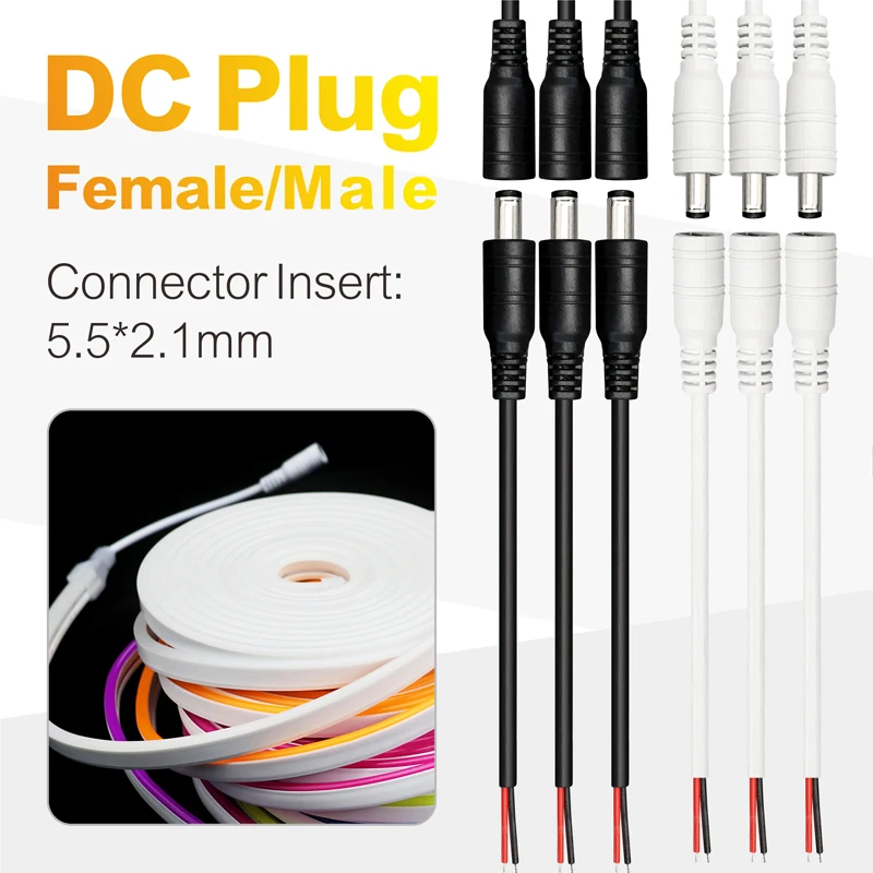 DC 5.5x2.1mm Male & Female Cable White 12V 5.5*2.1mm DC Power Plug Jack Pigtail Cable Wire Connector Adapter for LED Strip Light