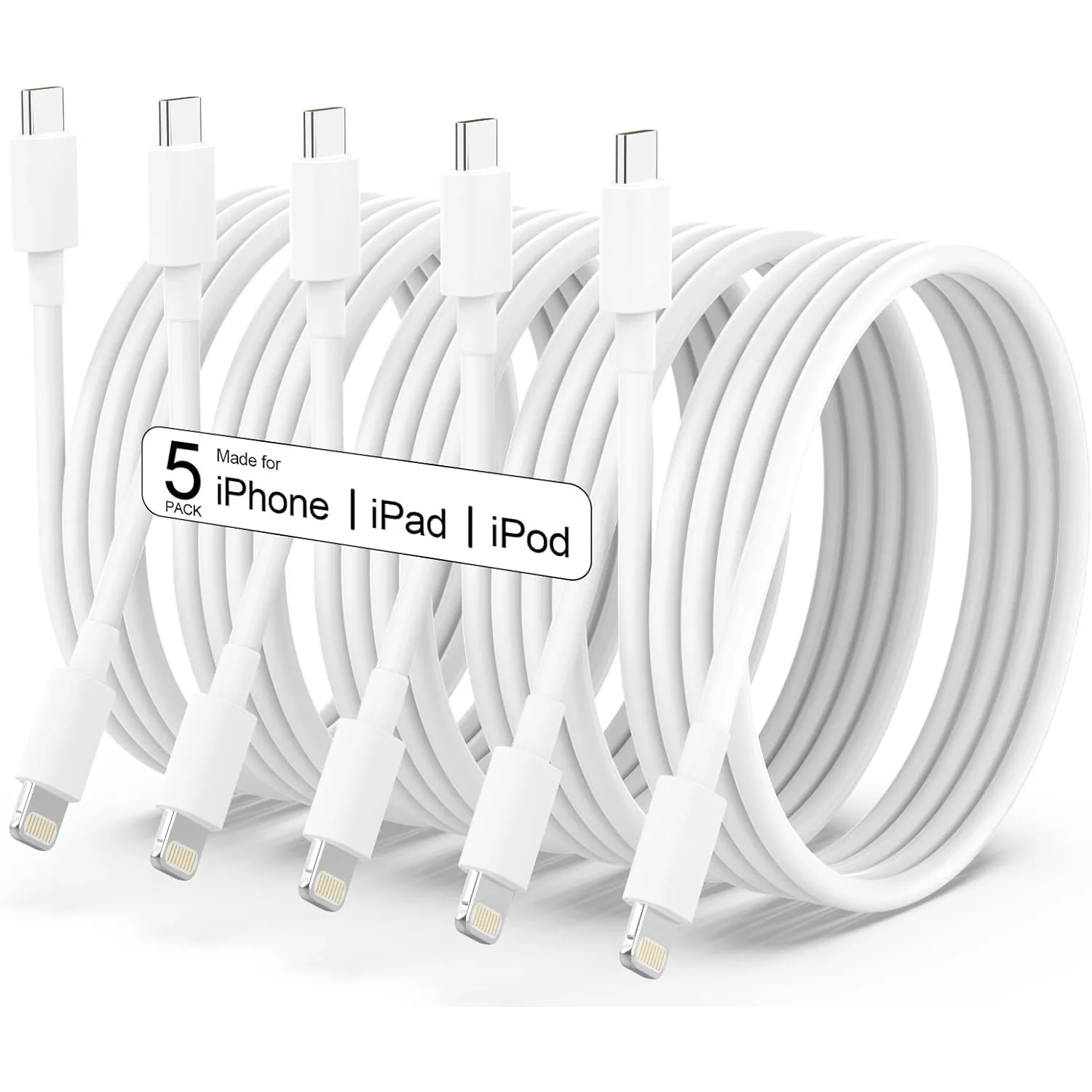 USB C to Lightning Cable Apple MFi Certified 5 Pack/6 FT iPhone Charger Fast Charging White Silicone iPhone 14 13 12 11 Pro Max