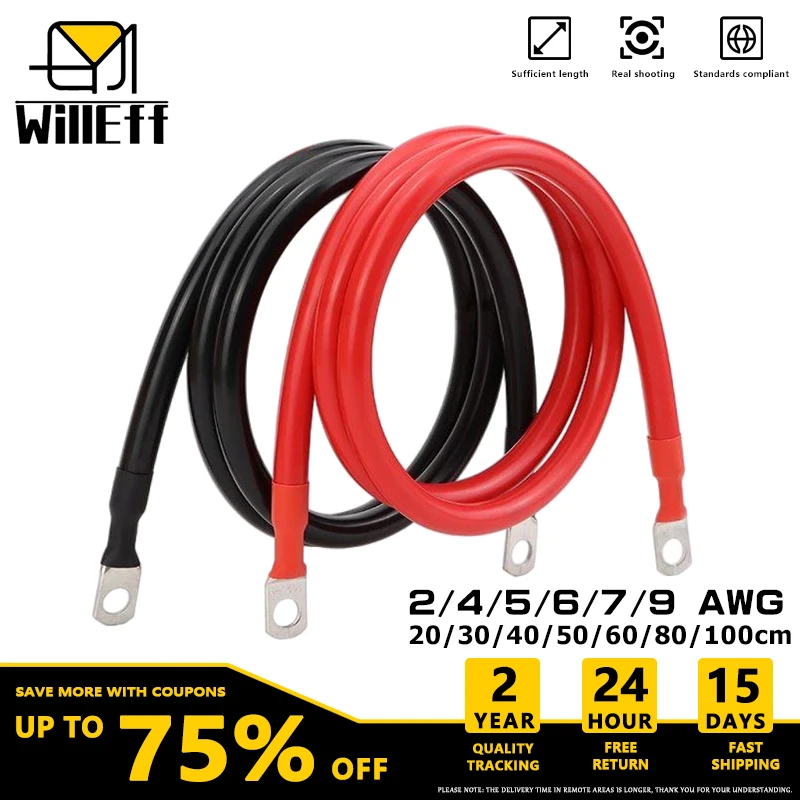 Battery Connect Inverter Cable Silicone cable with Lug Cable soft Terminal wire Black Red M6 M8 M10 9AWG 7AWG 5AWG 4AWG 2AWG