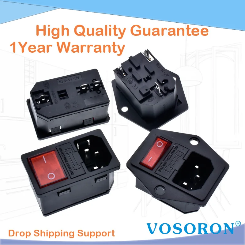 Red Button AC 250V 10A IEC 320 C14 Panel Mount Plug Adapter Power Connector Socket Screw Mount 3 Pins Inlet Power Plug Socket