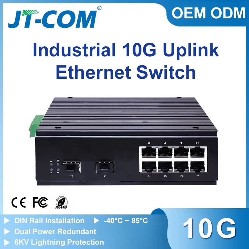 8 Port 10000M Switch Ethernet Industrial Gigabit, 8 Portas, 10G Network Switcher, 10G SFP, Uplink L2-Managed, Web Management