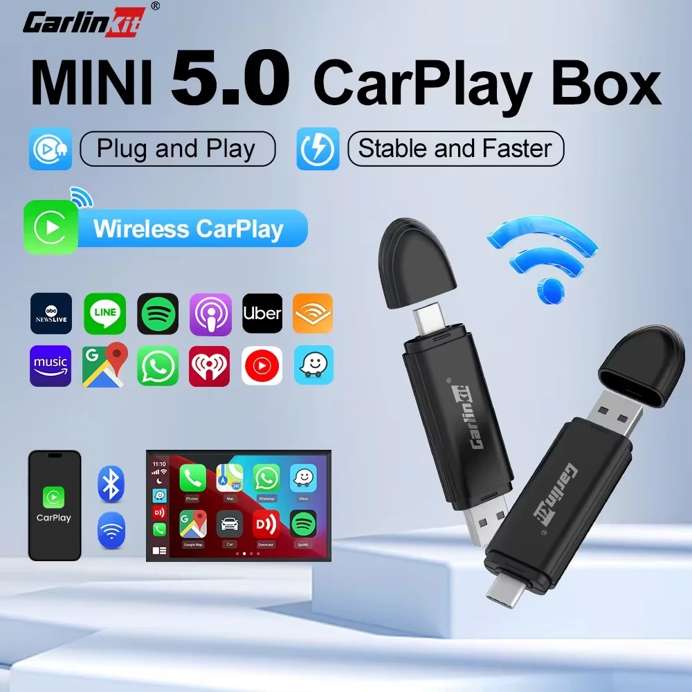 CarlinKit Mini 5 CarPlay Wireless USB Dongle Plug &Play Split Screen Wired To Wireless Adapter For Benz Kia Volvo Mazda MG Ford