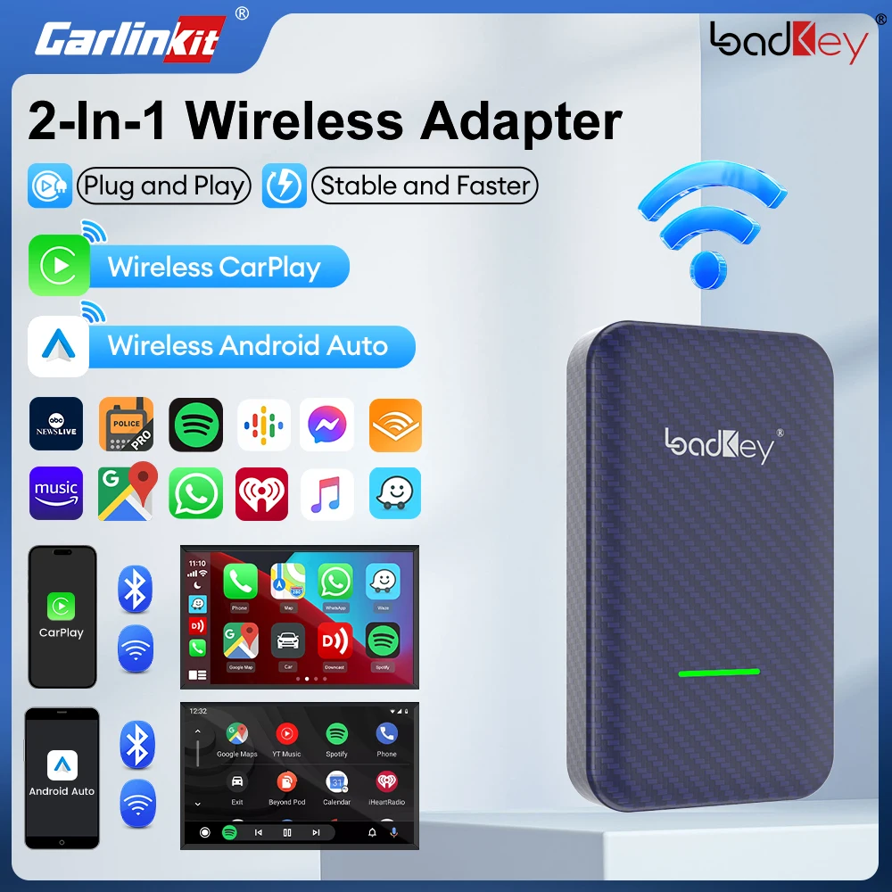 CarlinKit &Loadkey 2-In-1 Wireless Adapter Wired CarPlay To Wireless Android Auto & CarPlay Smart Car Box Plug &Play OTA Upgrade