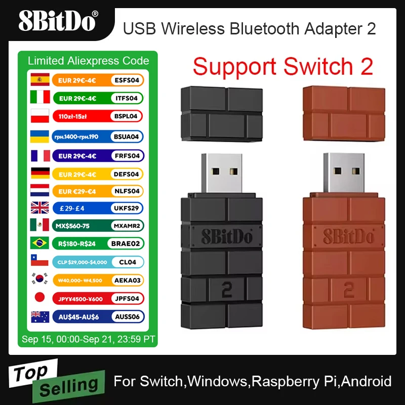 8BitDo USB Wireless Bluetooth Adapter Receiver for Nintendo Switch 2 Windows Mac PS1 for Xbox one PS4 PS5 Switch Pro Controller