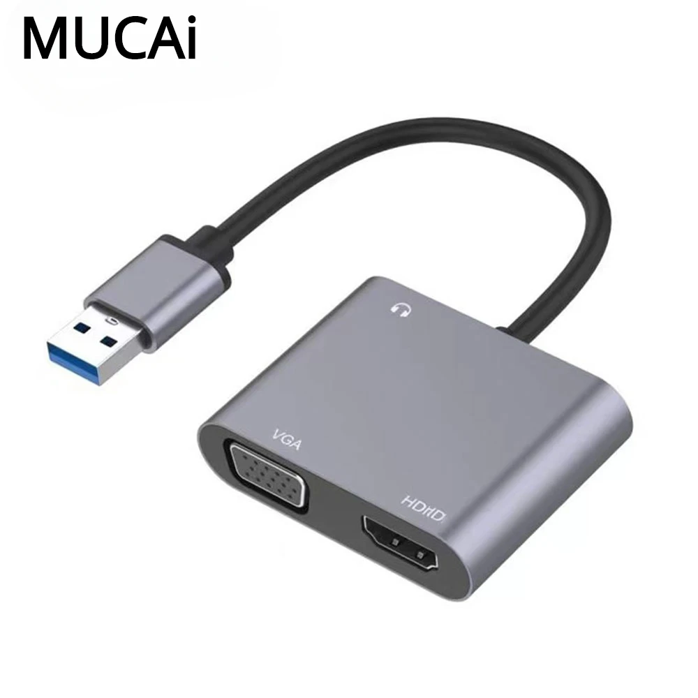 USB to HDMI-compatible VGA Adapter 1920*1080P Dual Output Multi-Display Converter For Mac OS Windows 7/8/10/11 Laptop Computer