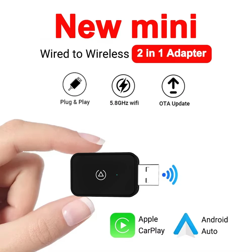 2024 Mini 2-in-1 2.4G & 5.8G Bluetooth WIFI Wired to Wireless for Apple Carplay AI Box Android Auto Dongle USB Adapter