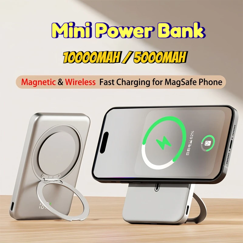 10000mAh Slim Mini Magnetic Wireless Power Bank PD 20W Fast Charger Stand Portable External Battery For iPhone Samsung