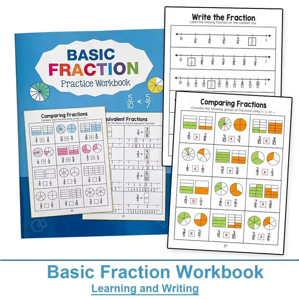 Montessori Fractions Workbook Arithmetic Learning Teaching Aids Grade 3-4 Primary School Math Cognitive Training Test Book
