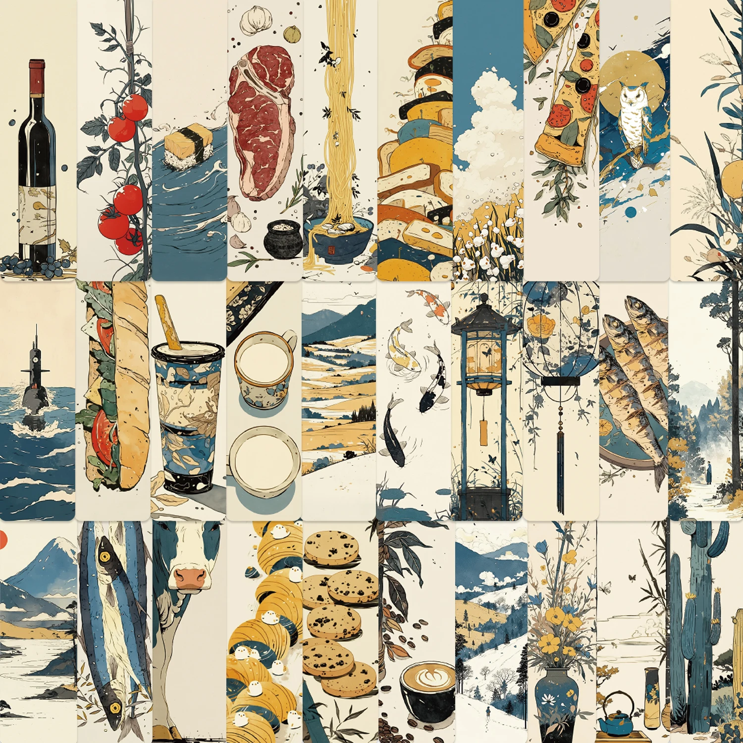 30PCS Retro Japanese Bookmark Series Simple Handheld Artistic Creative Materials Reading Paper Bookmarks DIY Bookmarks