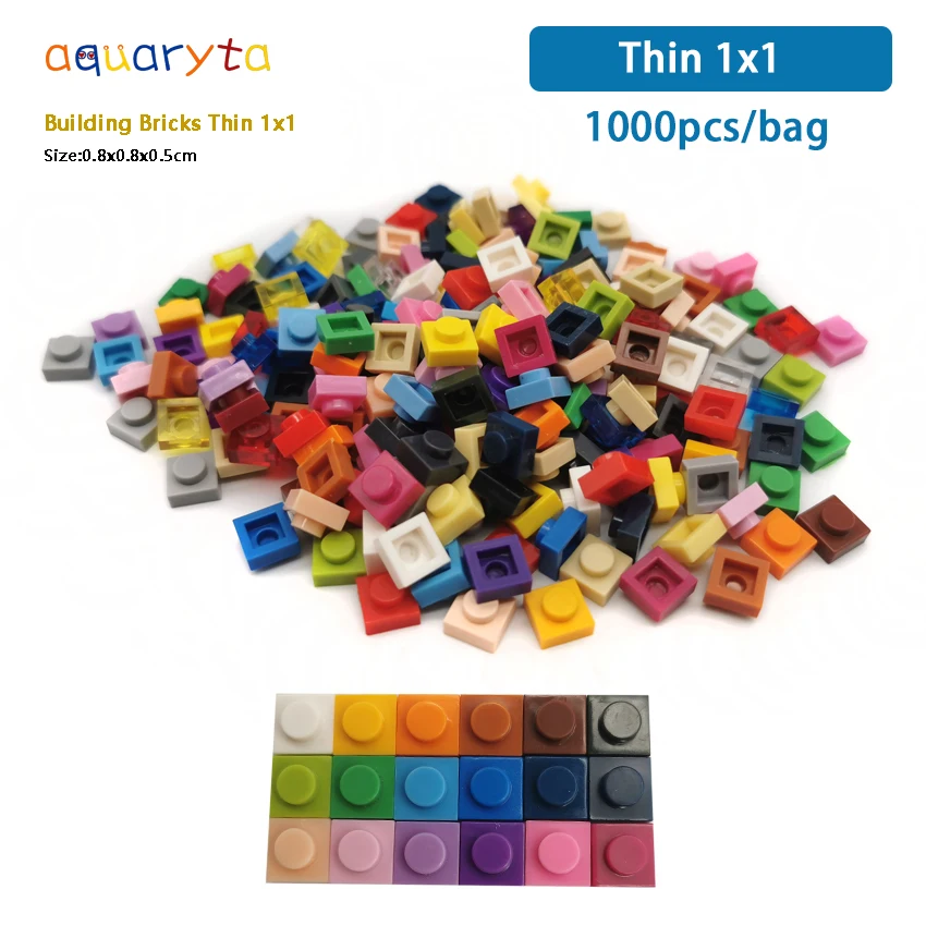 Aquaryta 1000pcs Building Bricks Thin 1X1 Bulk Compatible With Logo 3024 Educational Assemblage Construction Toys Gift for Kids