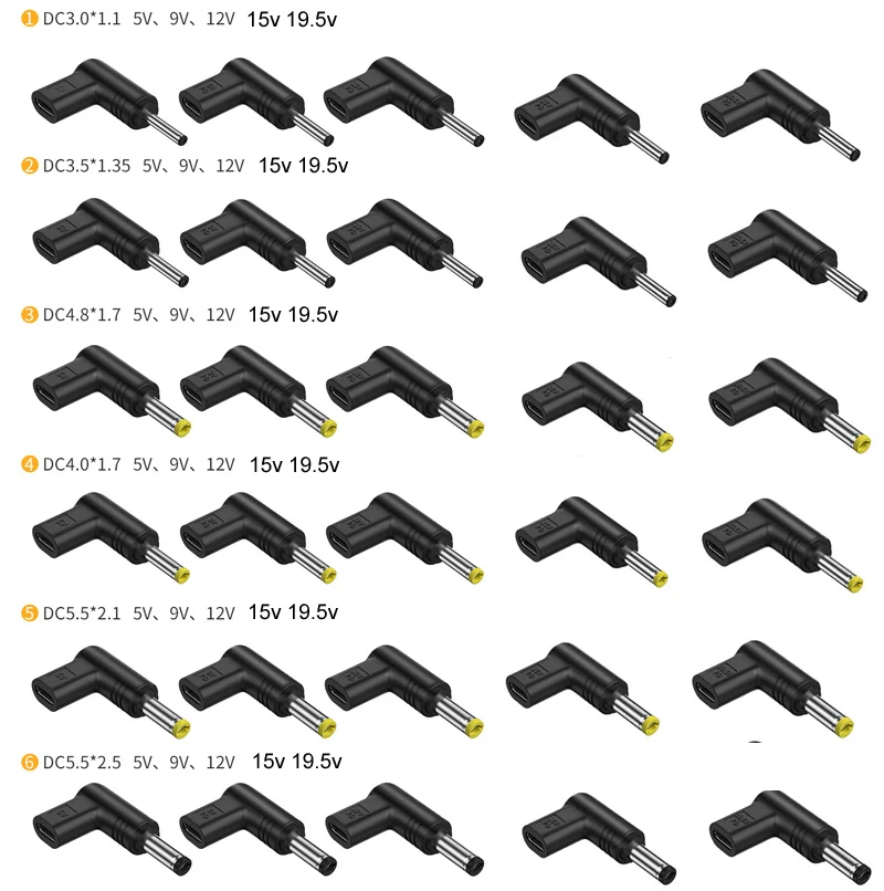 USB C Female PD to 5V/9V/12V/15V/19.5V DC Power Male Plug 3.0x1.1/3.5x1.35/4.0x1.7/4.8x1.7/5.5x2.1/5.5x2.5mm For Router Tablet