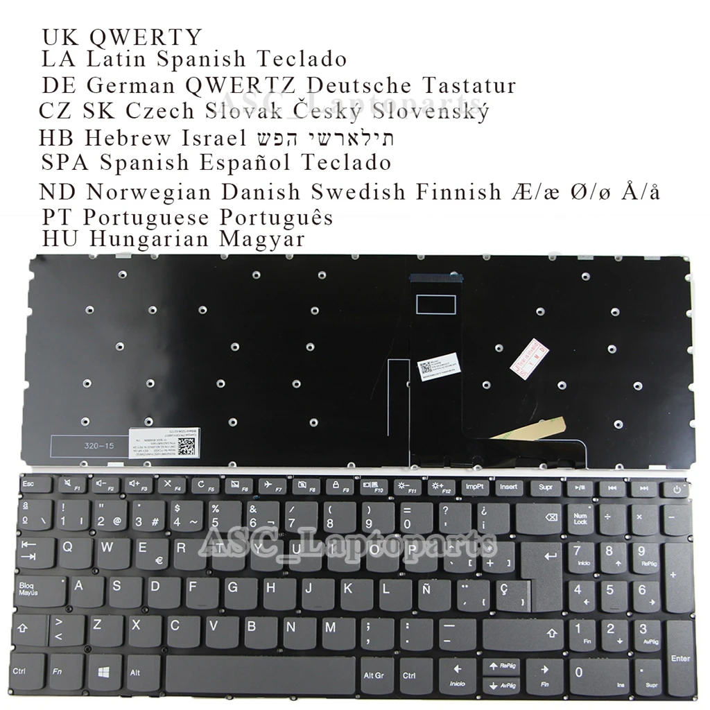 New UK Hungarian PT Czech German Hebrew Nordic LA Spanish Keyboard for Lenovo ideapad S145-15IKB S145-15IML S145-15IWL Gray