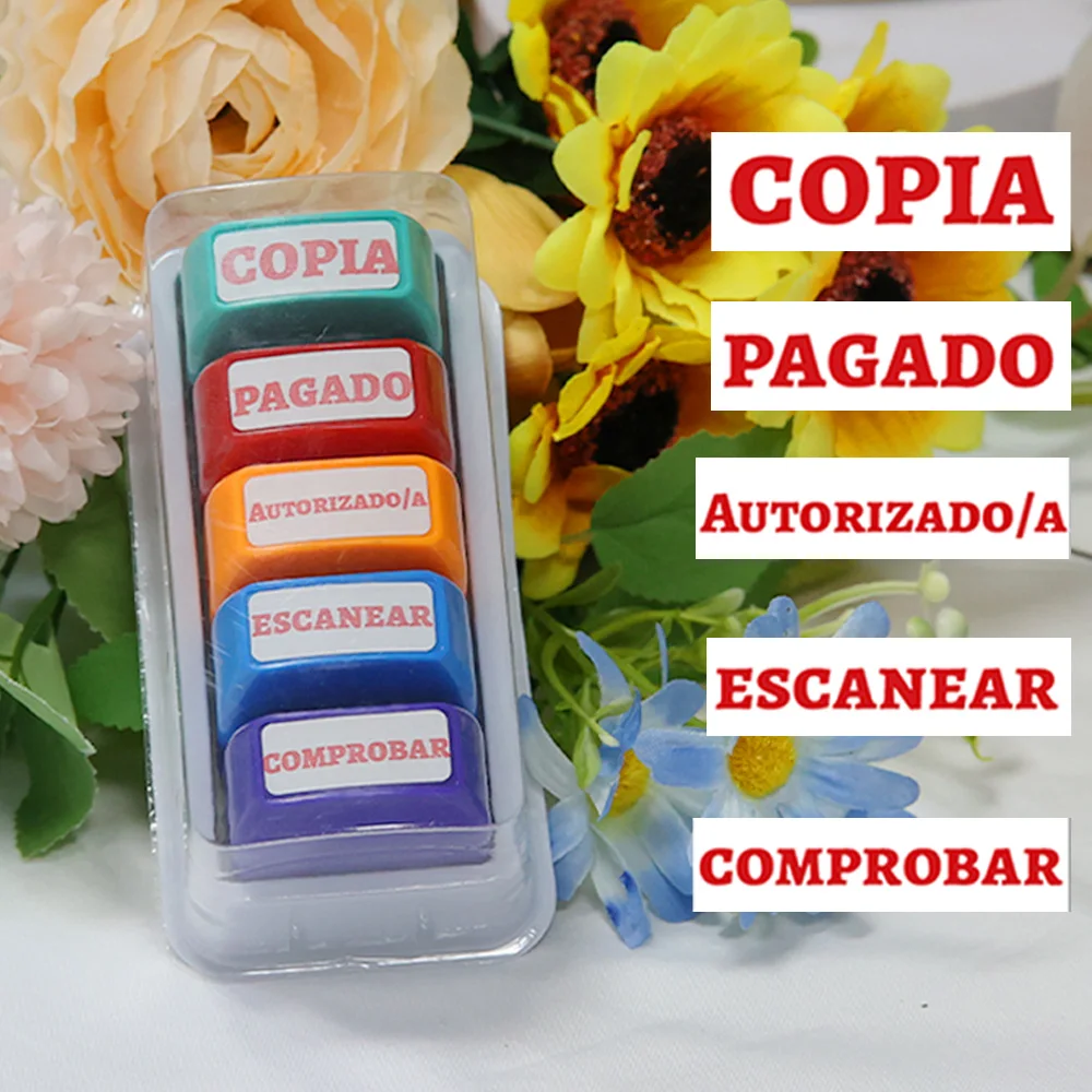 5 Spanish Financial Stamp Financial Office Accounting Approval Seal Scan, Approved, Checked, Payment, Copy Content Stamp