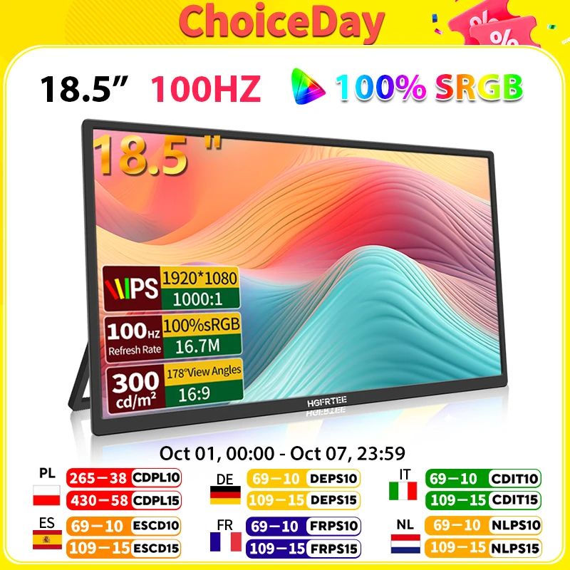 HGFRTEE 18.5inch 100Hz Portable Monitor With VESA Hole Stand PC Gaming Extended Display ADS-IPS Large screen Support Type-C HDMI  Read more