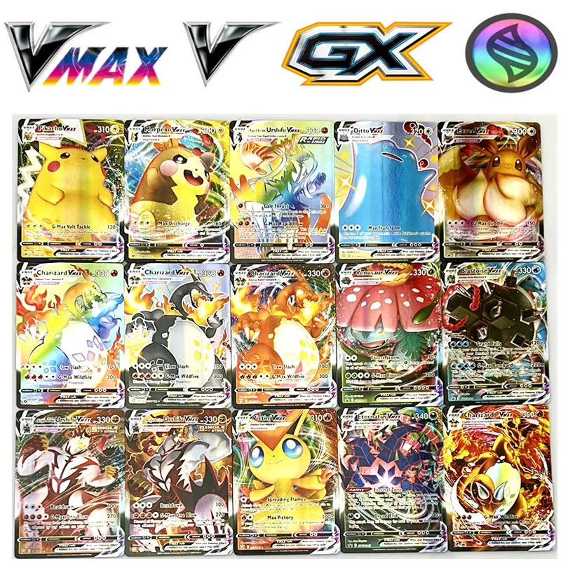 50/100Pcs pokemons French English German cards pokemons Card 100 Gx 100 V Max VMAX 50
