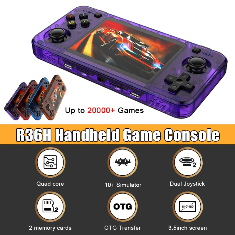 R36H Retro Handheld Console 3.5 inch IPS Screen Open-Source Linux System Portable Classic Game Consoles 64G Video Player Game