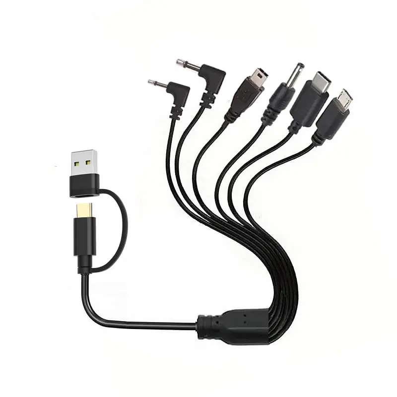 6 in 1 Multi Charging Cable, USB C to Type-C, Micro USB, Mini USB Charging Cord DC 3.5mm 3.5mm for Phones Speaker MP3 MP4 & More