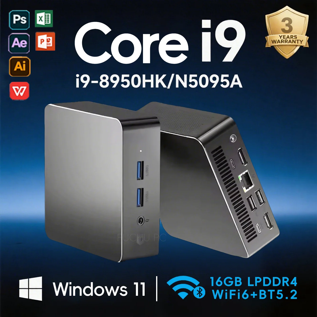 2025 Mini PC Core i9 8950HK N5095A Windows 11 Pro Desktop Pc Gaming Computer 16GB DDR4 1TB SSD WiFi6 BT5.2 4K Portable Pc