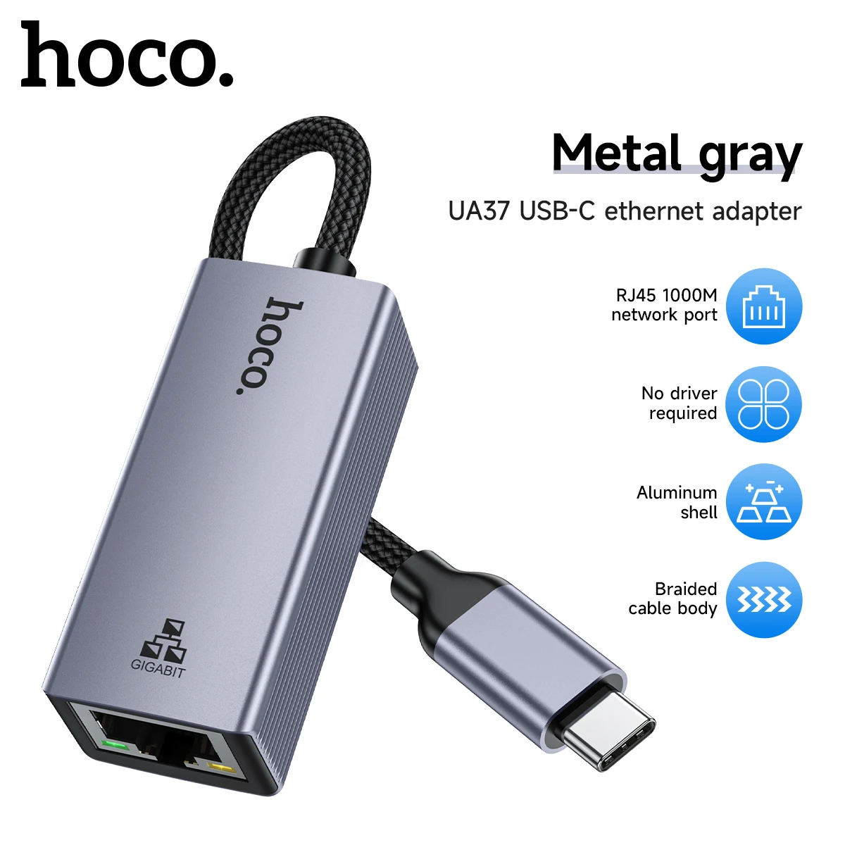 HOCO USB C to Ethernet Adapter Aluminum Gigabit USB C Adapter for Laptop MacBook Pro 1000/100Mbps USB Lan RJ45 Network Card