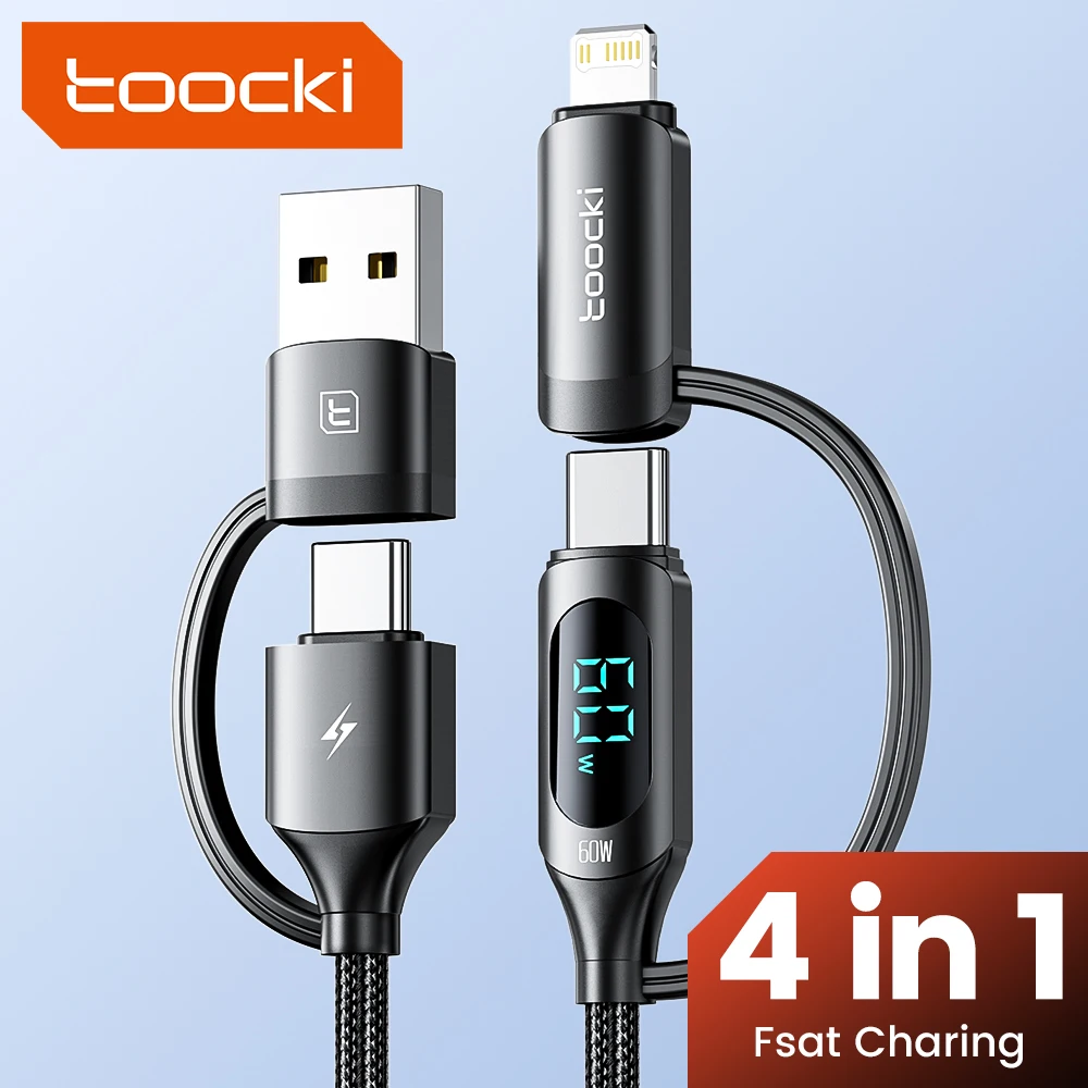 Toocki 4 in 1 USB A Type C To USB C Lightning Display PD Cable For iPhone 15 14 Fast Charging Charger Samsung Huawei Date Cord