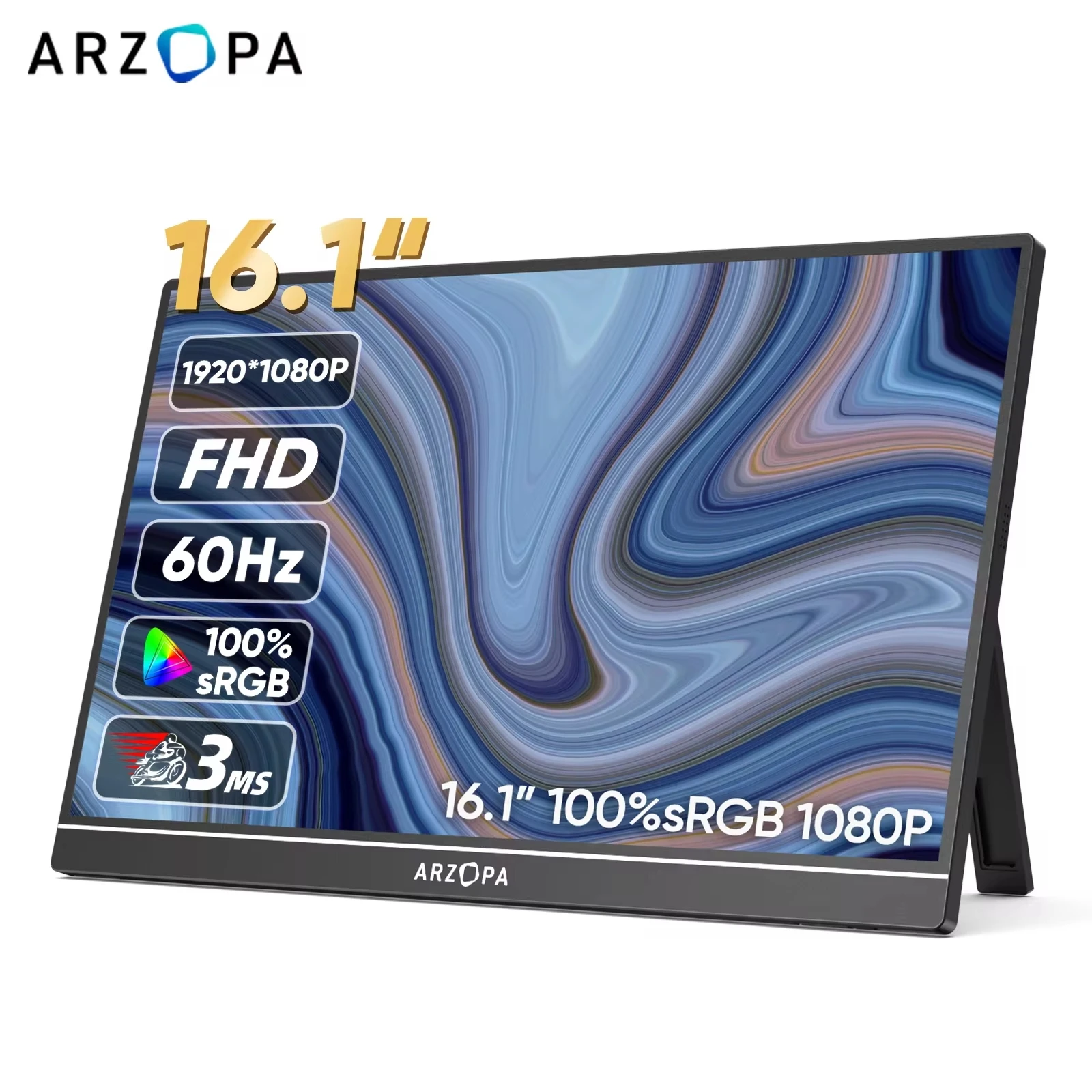 ARZOPA 16.1'' 100% sRGB Portable Monitor FHD1080P IPS Screen Second Monitor External Screen for MAC Laptop PC Xbox/PS/Switch, Z1C