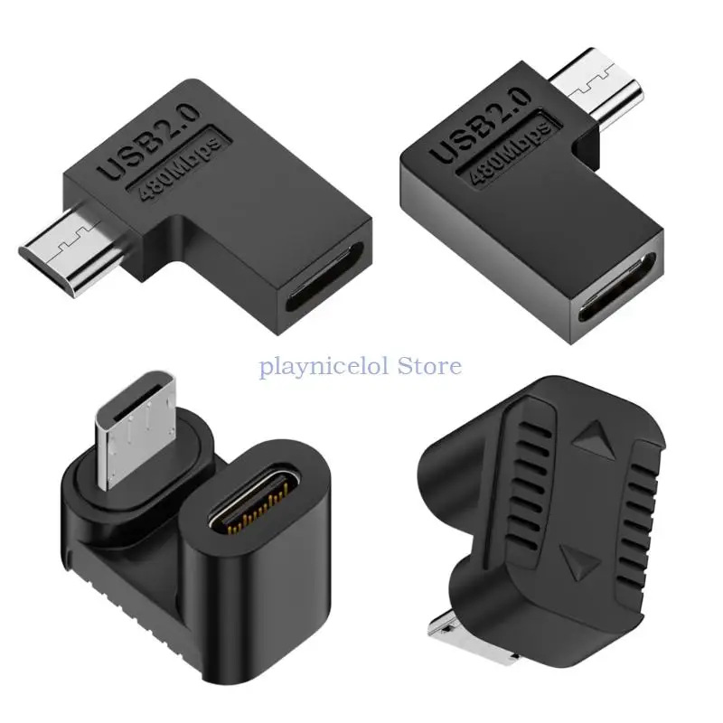 90 Degree Right Up Down Angled Micro USB Male to Type C Female Extension Adapter for Laptop PC Chargers Converter  Read more