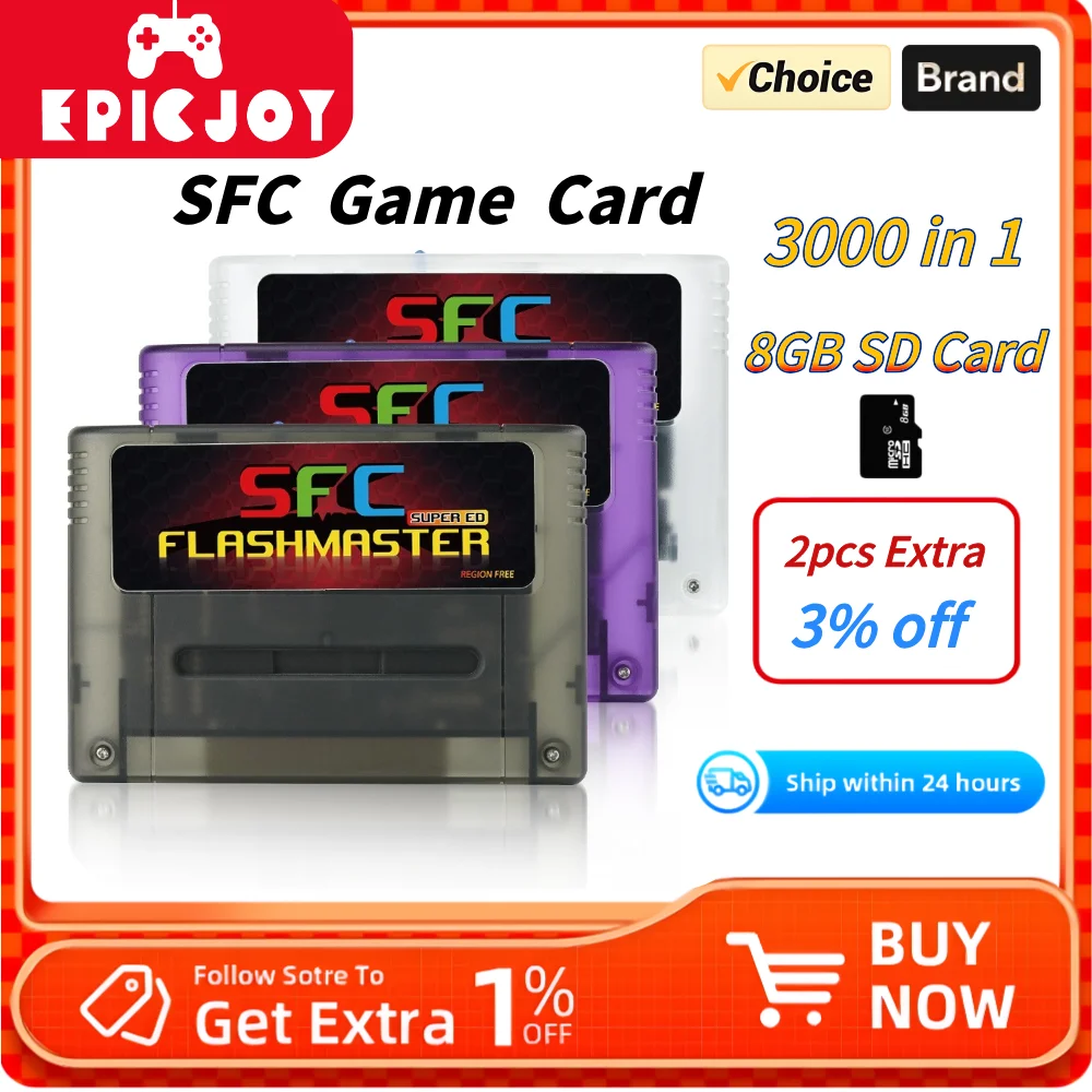 EPICJOY Super SFC 3000 in 1 Game Card With 8GB TF Card For Nintendo SNES SFC Original JPN/EU/USD Retro Video Game Console