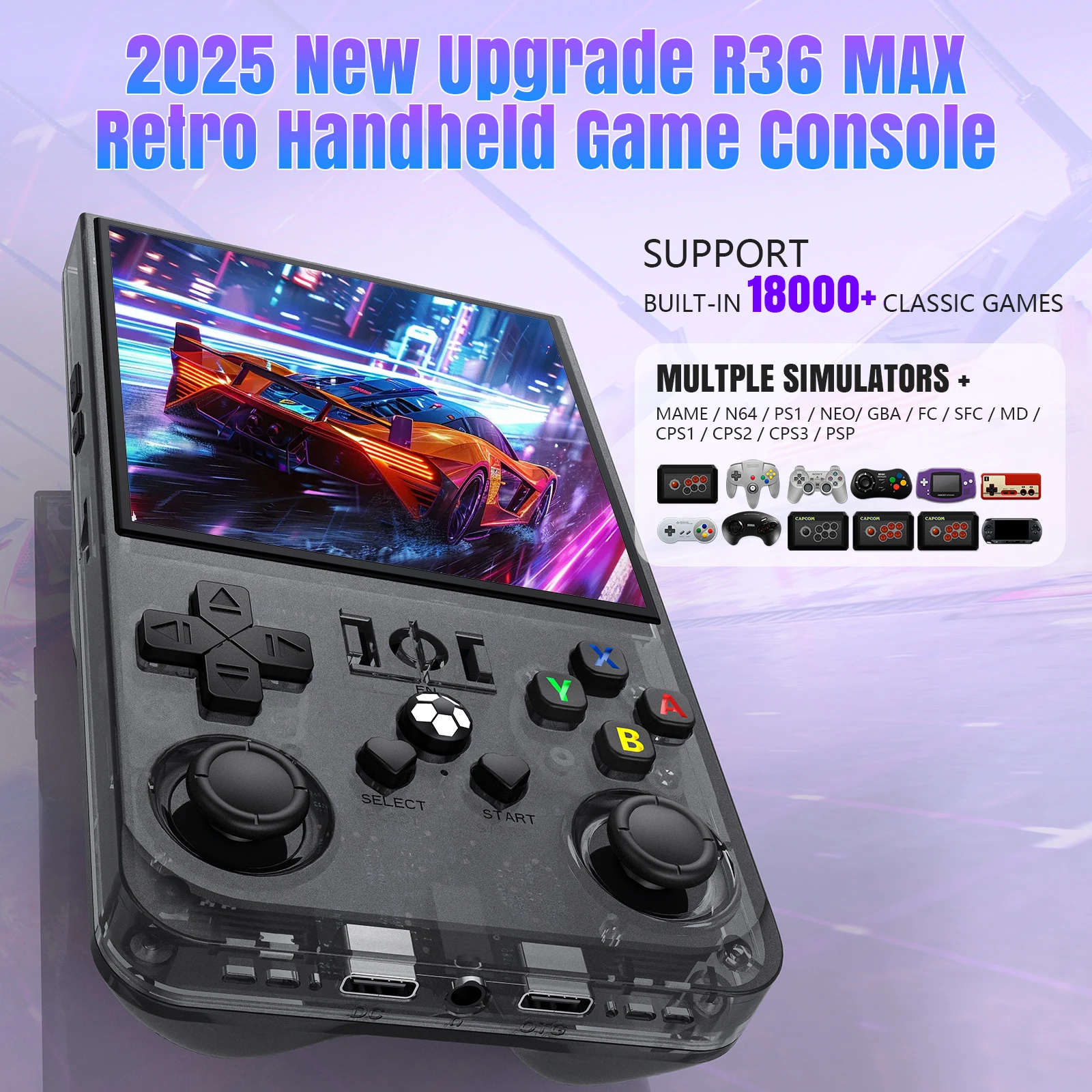 Open Source R36Max Newest Handheld Game Console Portable Hand Held 4.0-in 4k HD IPS Screen Large Battery Best Gift For Boy Girl