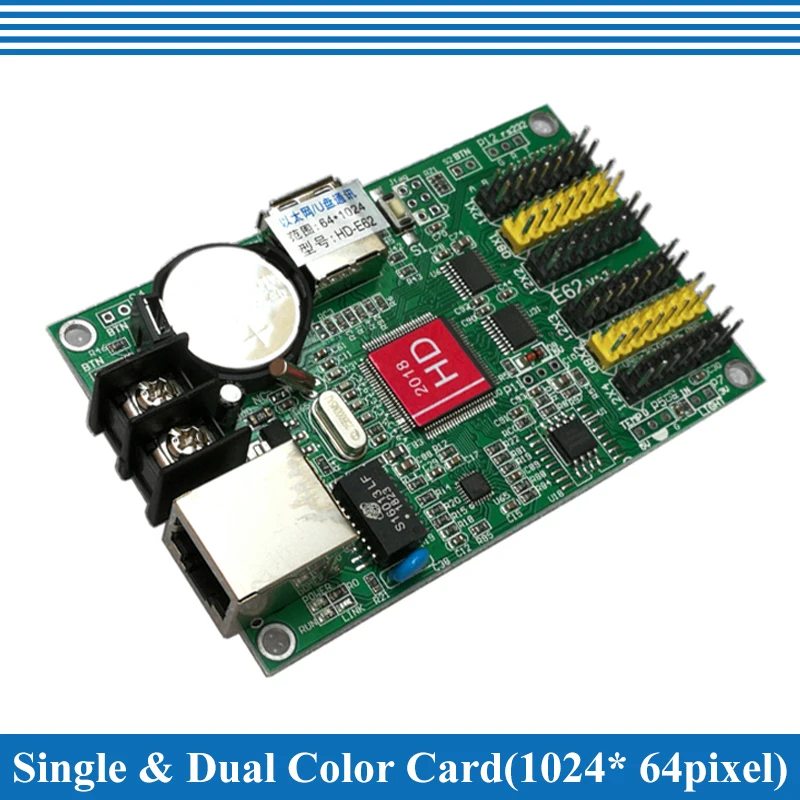 HD-E62 USB+RJ45 4*HUB12 2*HUB08 Single color(1024*64 pixels) & Dual color(512*64 pixels) LED display control card