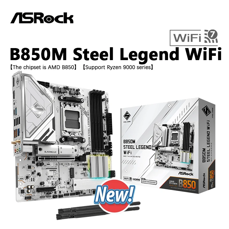 ASROCK New B850M STEEL LEGEND WIFI AMD B850 Micro ATX AMD Ryzen 9000 8000 7000 Series Motherboard Socket AM5