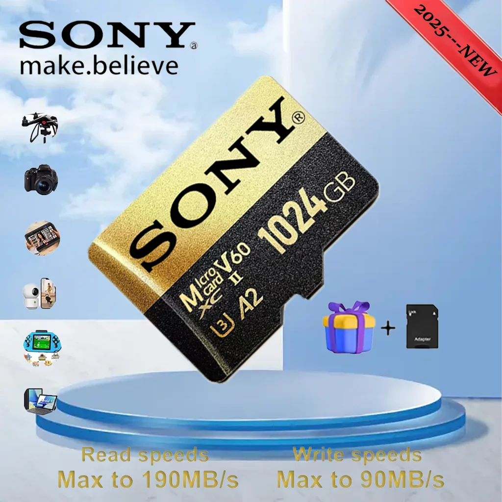SONY High Speed TF Micro SD Card 128GB/256GB/1024GB A2 U3 Stable Read/Write Black & Gold for Tablet/Gaming Consoles Memory Card