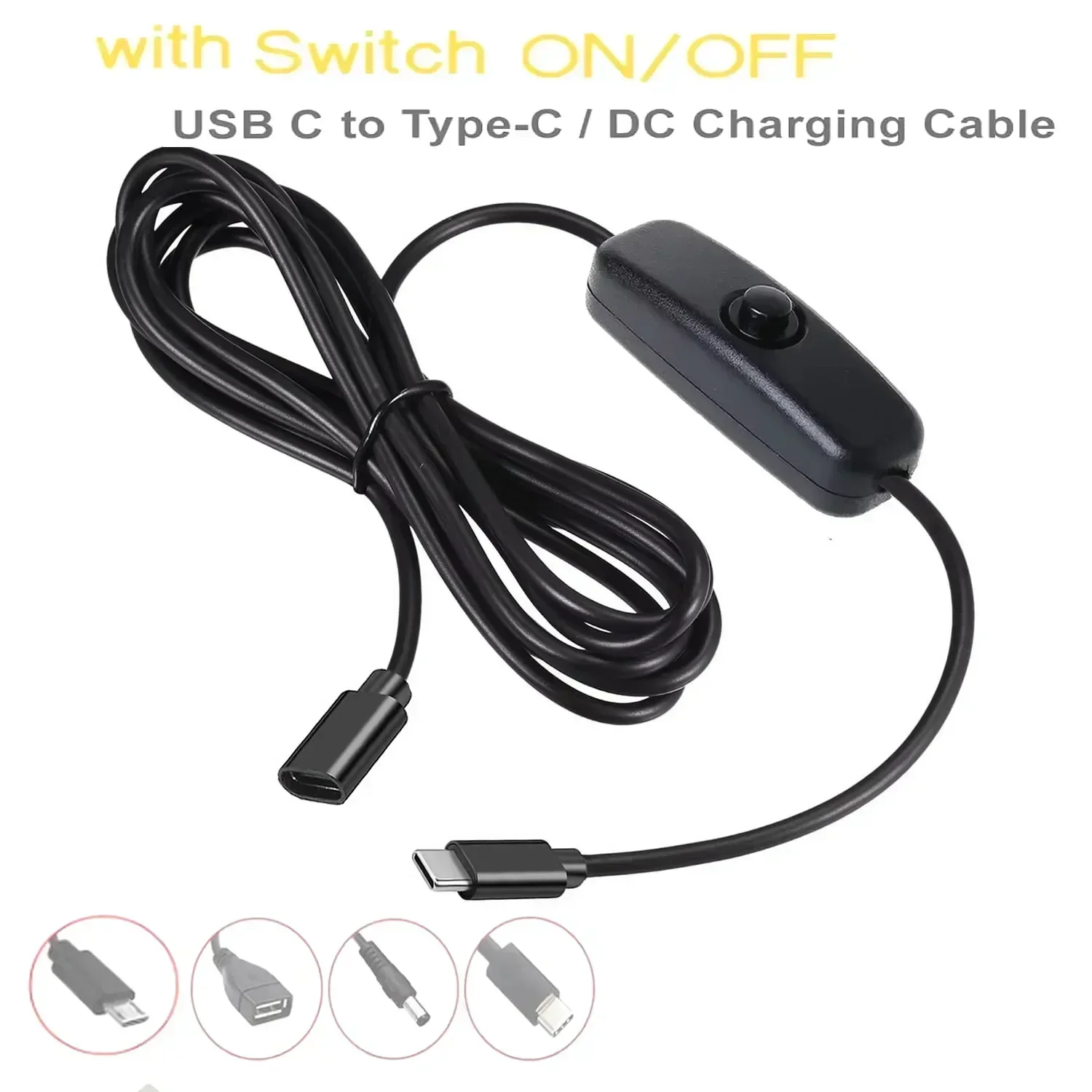 USB Type C Switch Charging Cord with ON/Off Button Data cable Support Data and Power for Mobile Phone Desk Lamp Fan LED Light