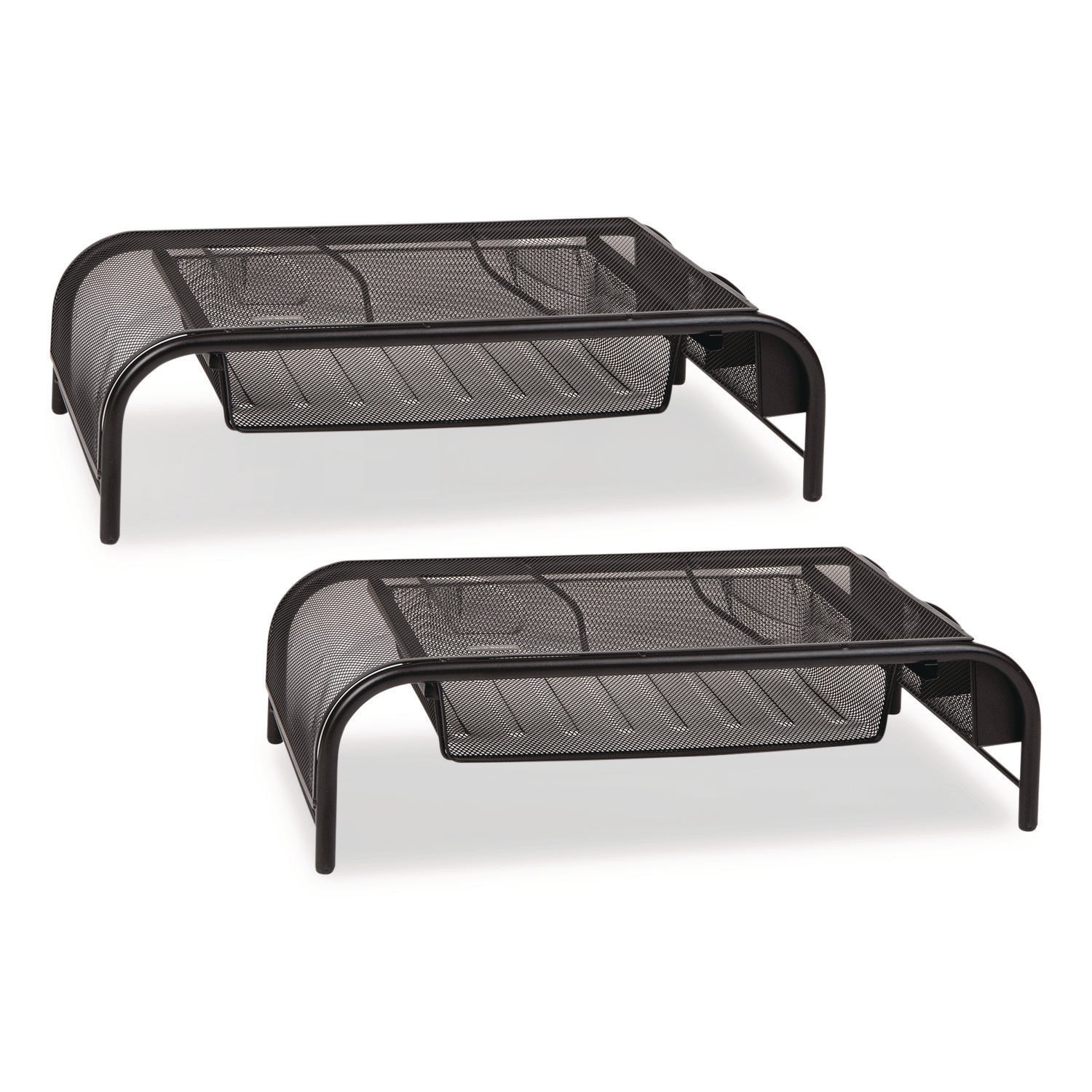 Raise up your monitor to reduce eye and muscle strain while you minimize clutter on your worksurface. Elevating your monitor to the appropriate height helps you maintain good posture, reducing strain and discomfort, and the Mind Reader Metal Mesh...