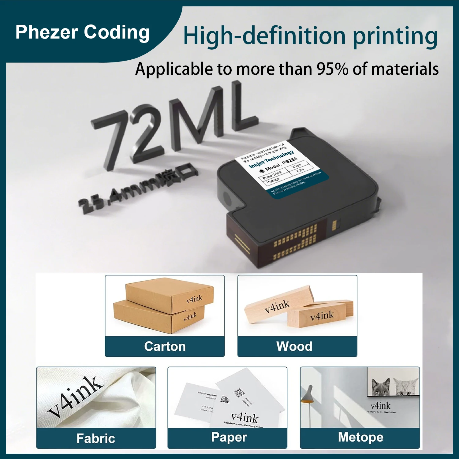 Phezer 1/3/5Pcs/10pcs PS254 25.4mm Printer Ink Original Black A Level Quick Dry High Adhesion Handheld Online Inkjet Printer