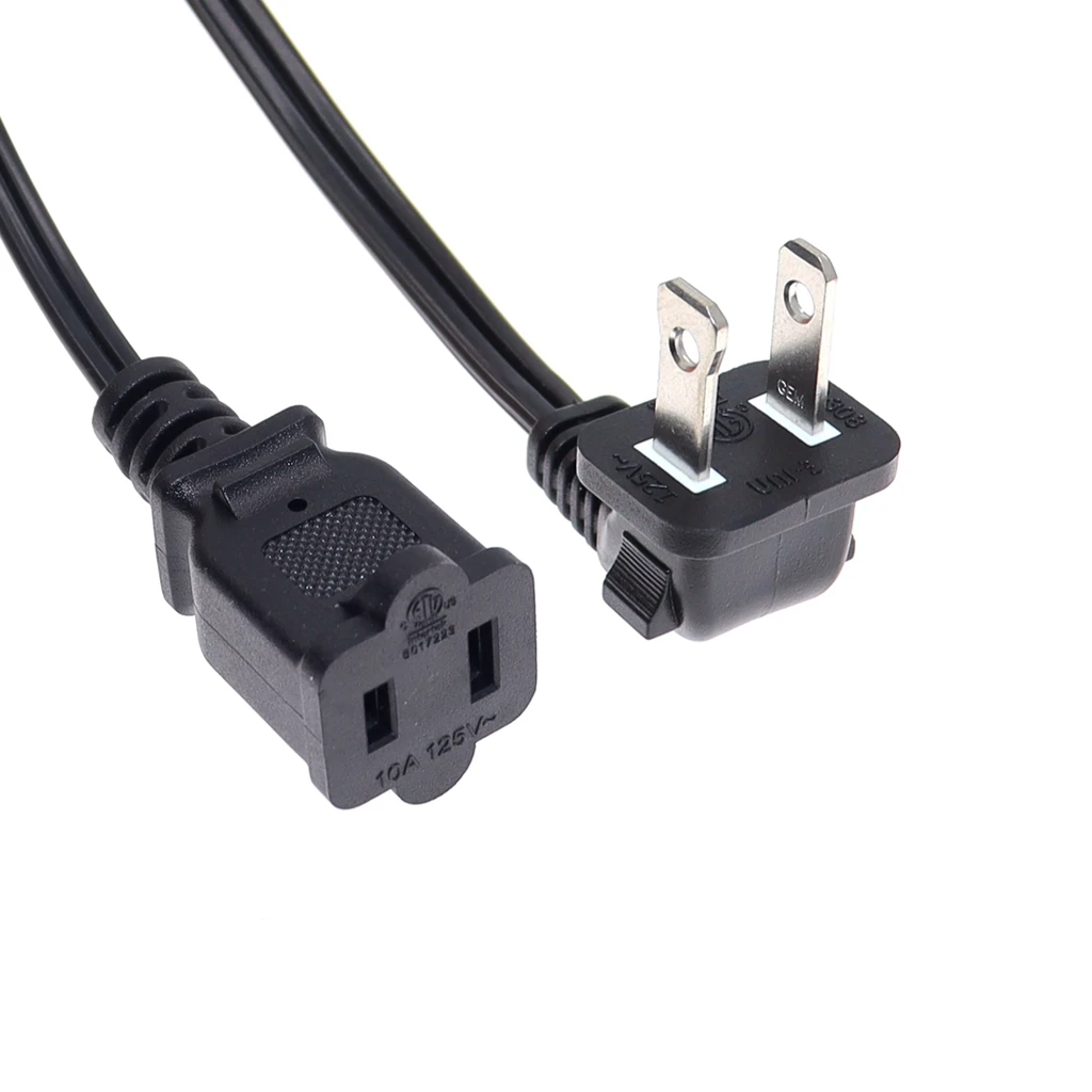 Right Angled Polarized US 2-Prong Male to Female Extension Cord, Nema 1-15P to 1-15R Power Outlet Extension Cable 18AWG 0.5m/3m
