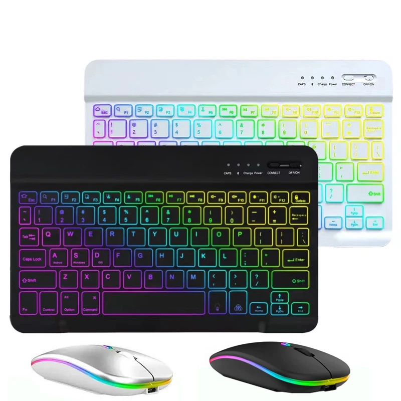 Backlight Bluetooth Keyboard Mouse RGB Wireless Keyboard Backlit English keyboard Rechargeable for IOS Android Windows iPad