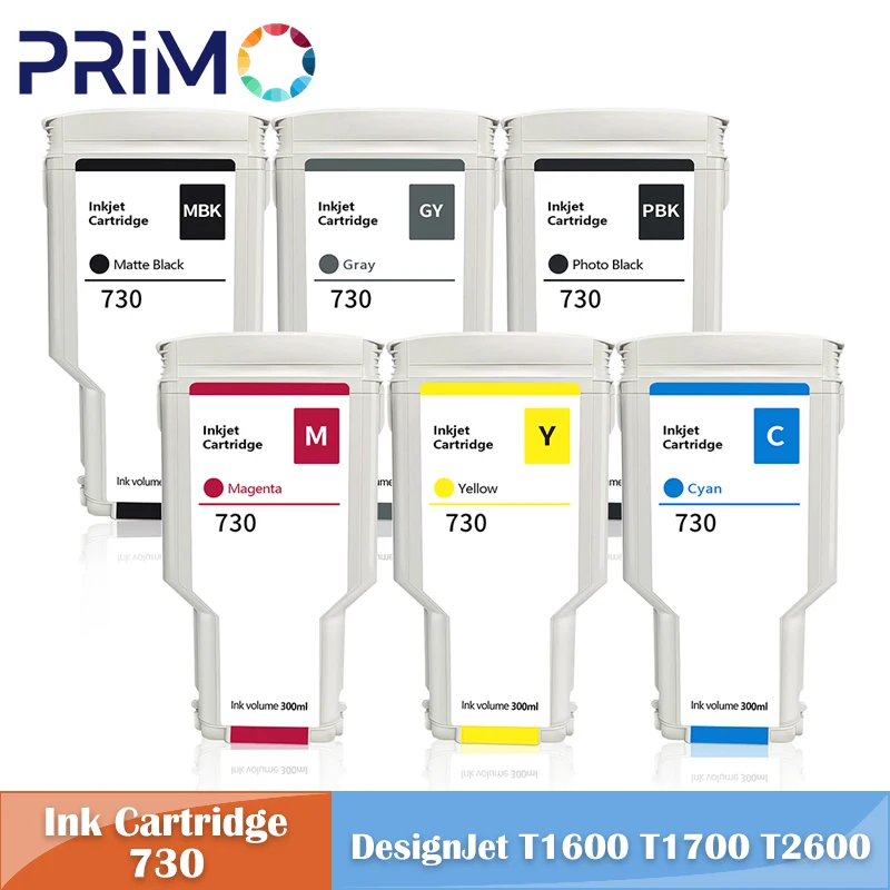 300ML Pigment Dye Ink Cartridge 6Colors For HP 730 HP730 DesignJet T1600 T1600dr T1700 T1700dr T2600 T2600d P2V68A P2V69A P2V70A