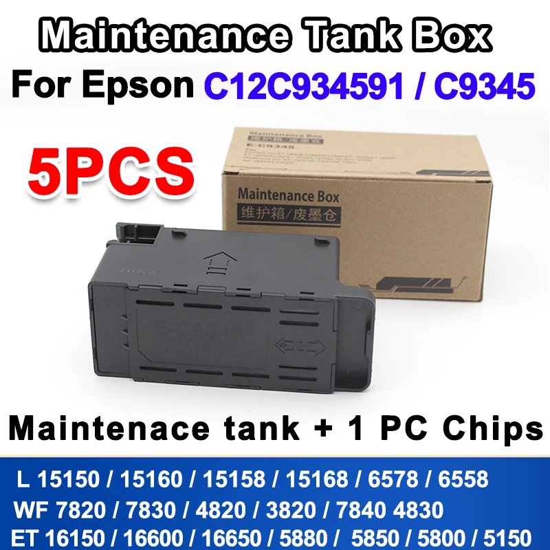 5 PCS C12C934591 C9345 Ink Maintenance Tank For Epson WF 7820 7830 4820 3820 7840 4830 ET 16150 16600 16650 5880 5850 5800 Box