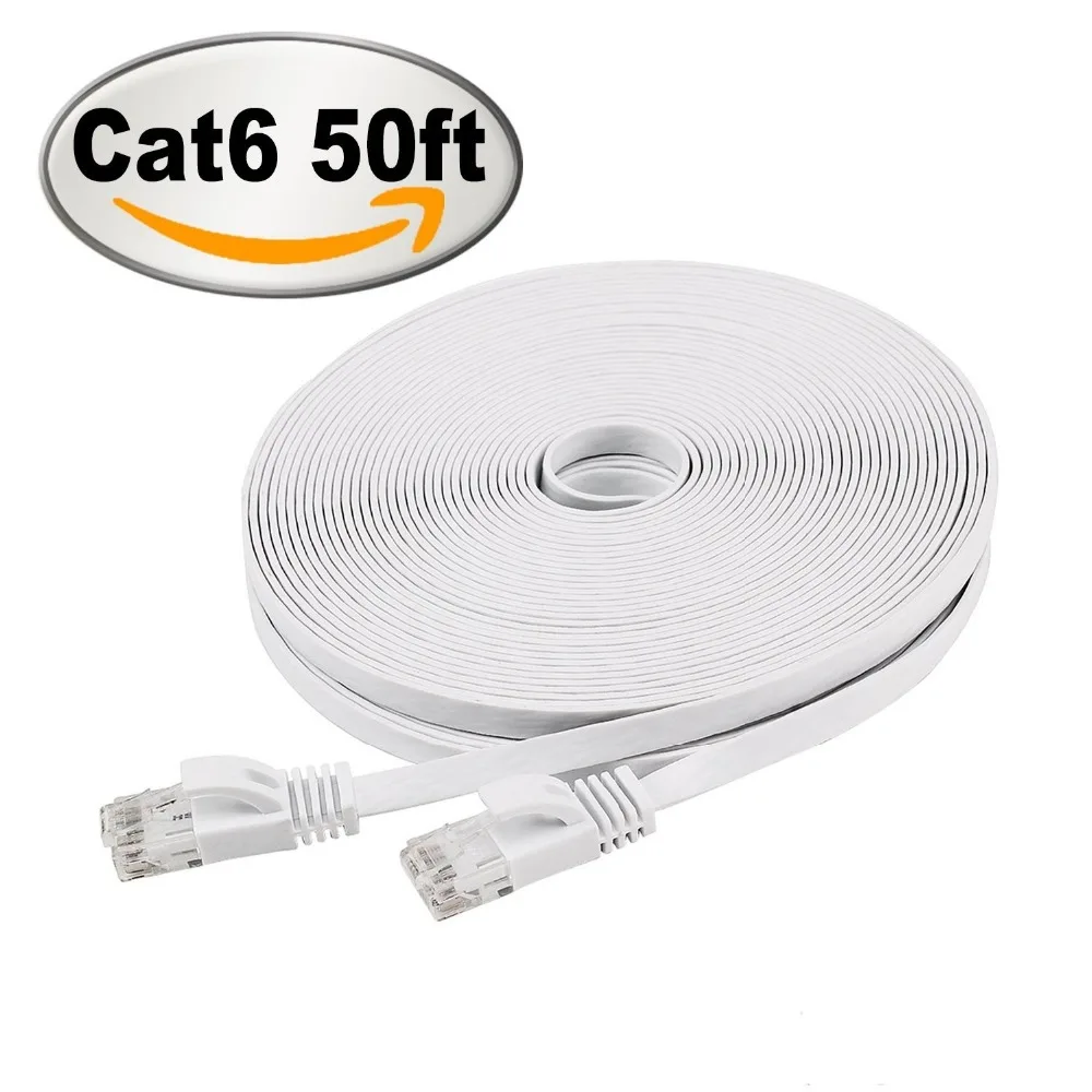 Cat 6 Ethernet Cable 50ft White black Flat Internet Network Cable Cat 6 Computer Cable With Snagless Rj45 Connectors50ft 15m